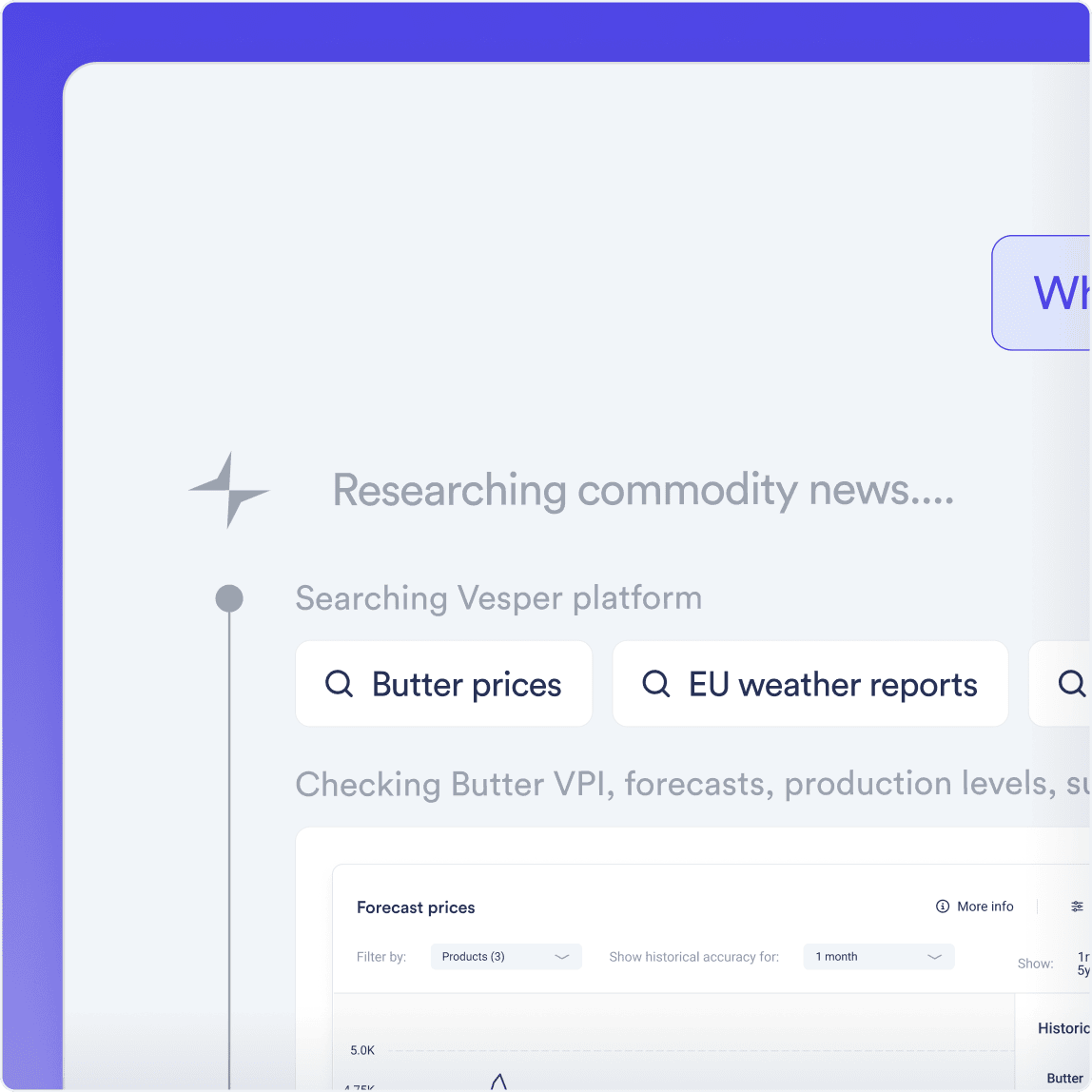 Dive deeper into the data that drives your sourcing strategy. From spot prices to forecasts and benchmarks, explore every Vesper feature designed to keep you ahead of the market.