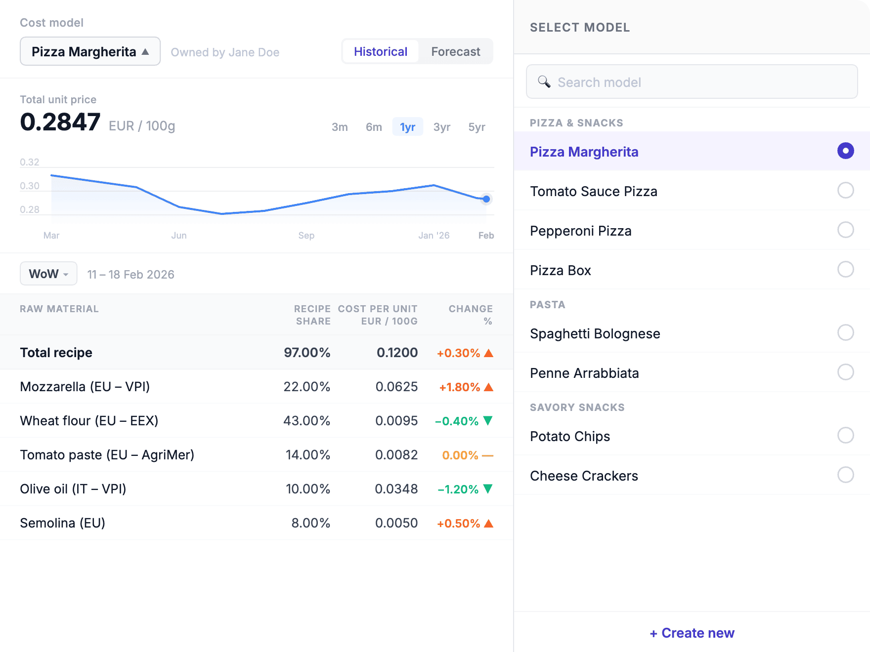 Price forecasts updated weekly, up to 12 months out. Know what your ingredients will cost next quarter.
