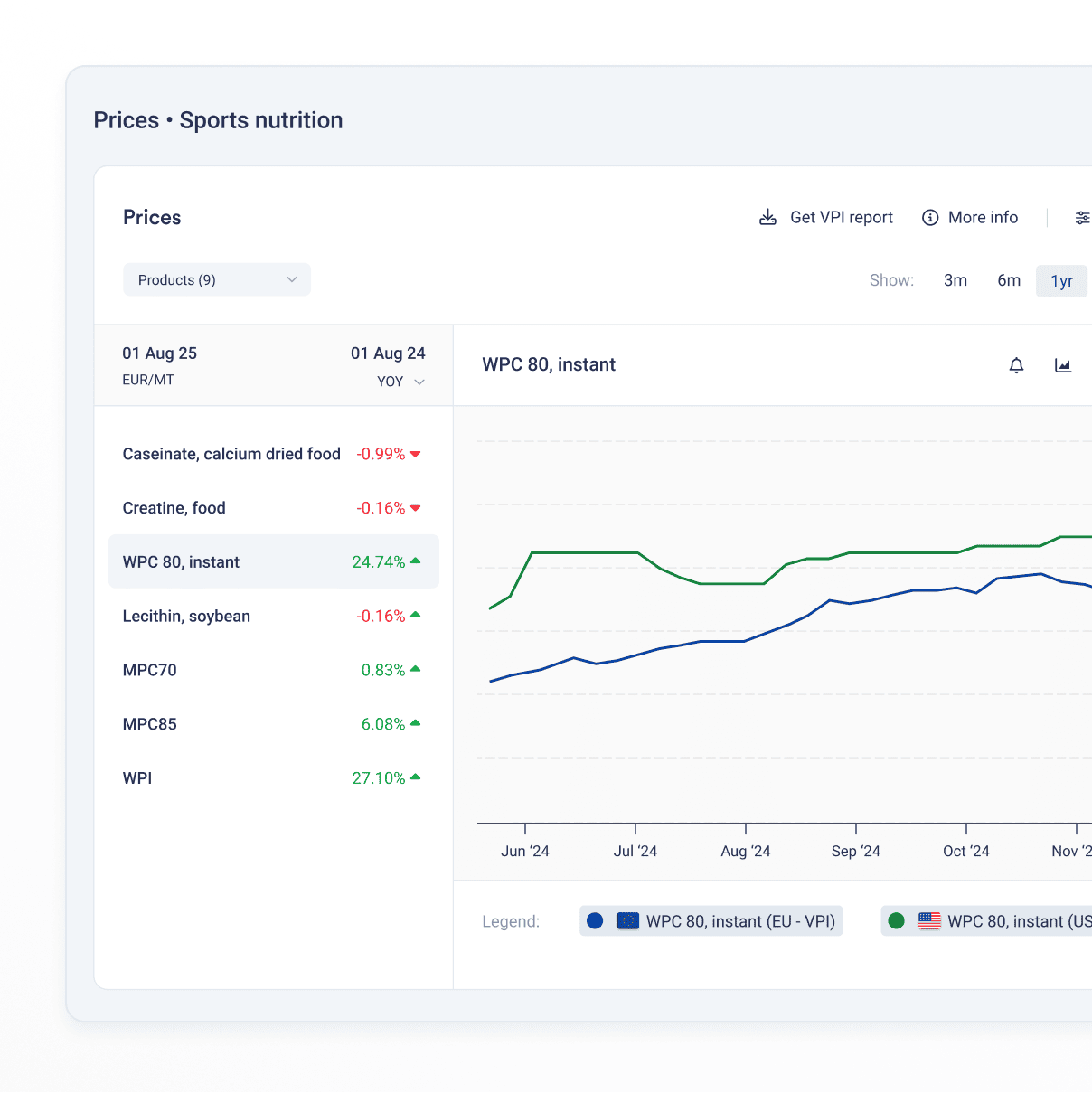 High proteins, creatine, and specialty ingredients operate in opaque markets. Without reliable benchmarks, you're negotiating blind.