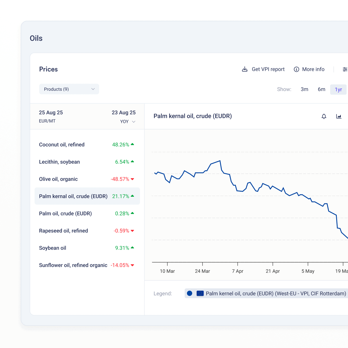 When soy prices move, will palm and rapeseed follow? Tracking these critical relationships is impossible with scattered data sources.