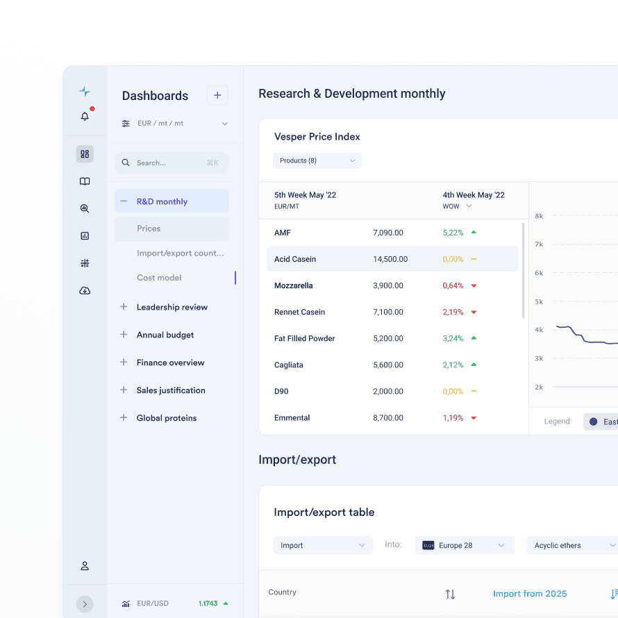 Do you benchmark purchases against one or the other? Both. Budget tells you if you stayed within plan; market tells you if you paid the fair price on the day. Budgets are often set 12–18 months in advance, while markets move weekly. Vesper makes benchmarking a breeze by giving access to independent benchmarks for the ingredients you buy.